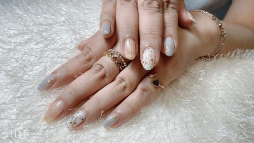 今回のデザインは初夏に合わせて、爽やかなブルー系で。 左右1本ずつアートを入れたデザインです。 右手の人差し指と左手の薬指にアートをいれました。個人的にこの指にアートが入るデザインが好きです♪ アートはシェルを埋め込み、 […]