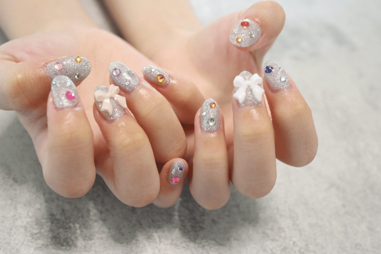 ビジューたっぷりのキッズネイル